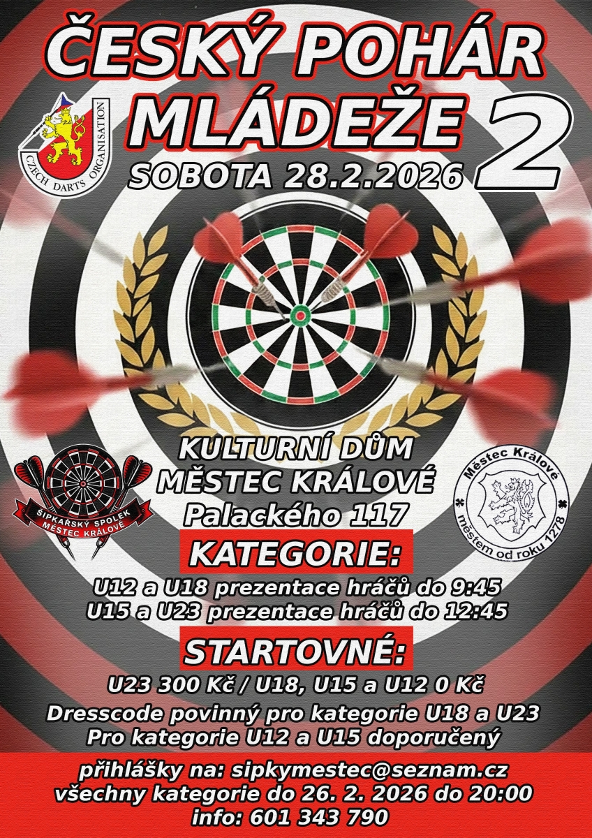Přihlášením se na tento turnaj každý účastník bere na vědomí, že ČŠO zpracovává osobní údaje v platném formátu ČŠO a to v podobě přihlášky, startovní listiny, rozlosování turnaje a výsledků na webu ČŠO (https://www.czechdarts.org) a v informačním systém STEDAR (https://www.stedar.org). Více informací na https://www.czechdarts.org/rubrika/ochrana-osobnich-udaju