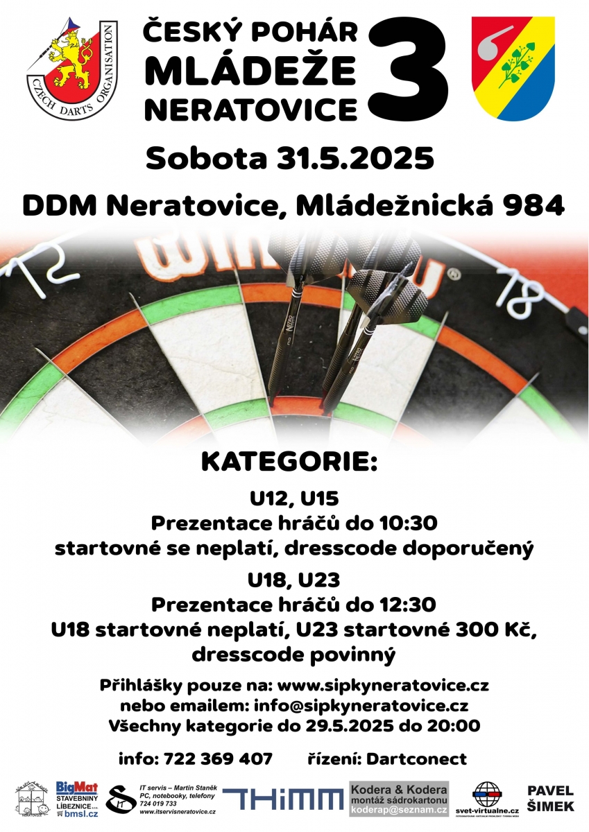 Přihlášením se na tento turnaj každý účastník bere na vědomí, že ČŠO zpracovává osobní údaje v platném formátu ČŠO a to v podobě přihlášky, startovní listiny, rozlosování turnaje a výsledků na webu ČŠO (https://www.czechdarts.org) a v informačním systém STEDAR (https://www.stedar.org). Více informací na https://www.czechdarts.org/rubrika/ochrana-osobnich-udaju