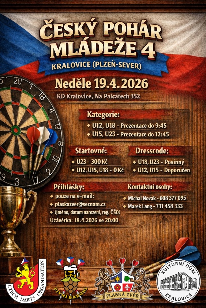Přihlášením se na tento turnaj každý účastník bere na vědomí, že ČŠO zpracovává osobní údaje v platném formátu ČŠO a to v podobě přihlášky, startovní listiny, rozlosování turnaje a výsledků na webu ČŠO (https://www.czechdarts.org) a v informačním systém STEDAR (https://www.stedar.org). Více informací na https://www.czechdarts.org/rubrika/ochrana-osobnich-udaju