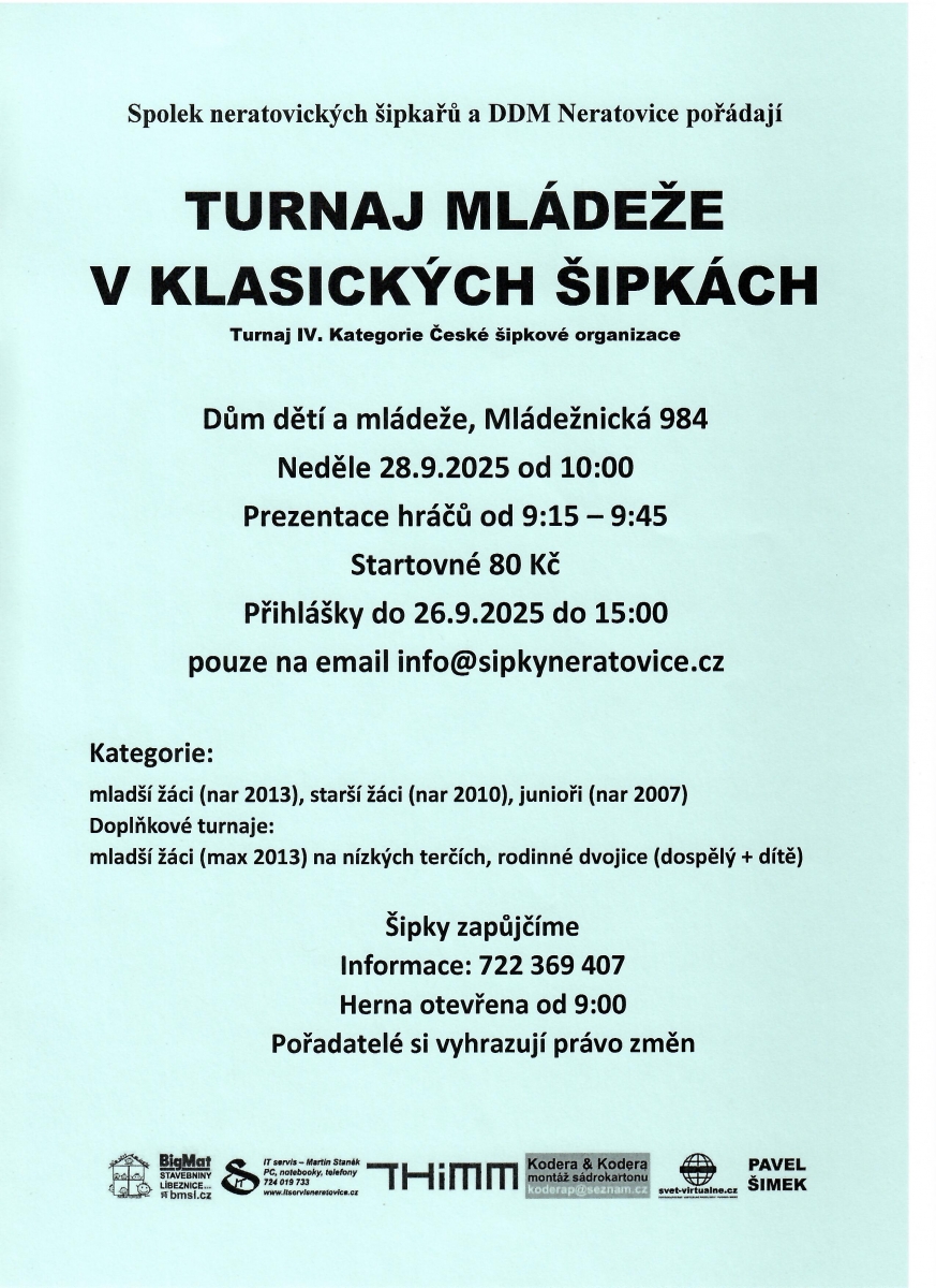Přihlášením se na tento turnaj každý účastník bere na vědomí, že ČŠO zpracovává osobní údaje v platném formátu ČŠO a to v podobě přihlášky, startovní listiny, rozlosování turnaje a výsledků na webu ČŠO (https://www.czechdarts.org) a v informačním systém STEDAR (https://www.stedar.org). Více informací na https://www.czechdarts.org/rubrika/ochrana-osobnich-udaju