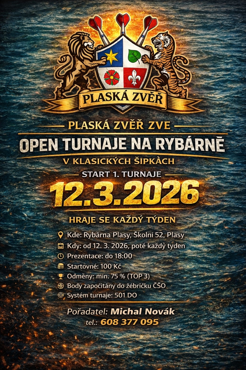 Přihlášením se na tento turnaj každý účastník bere na vědomí, že ČŠO zpracovává osobní údaje v platném formátu ČŠO a to v podobě přihlášky, startovní listiny, rozlosování turnaje a výsledků na webu ČŠO (https://www.czechdarts.org) a v informačním systém STEDAR (https://www.stedar.org). Více informací na https://www.czechdarts.org/rubrika/ochrana-osobnich-udaju