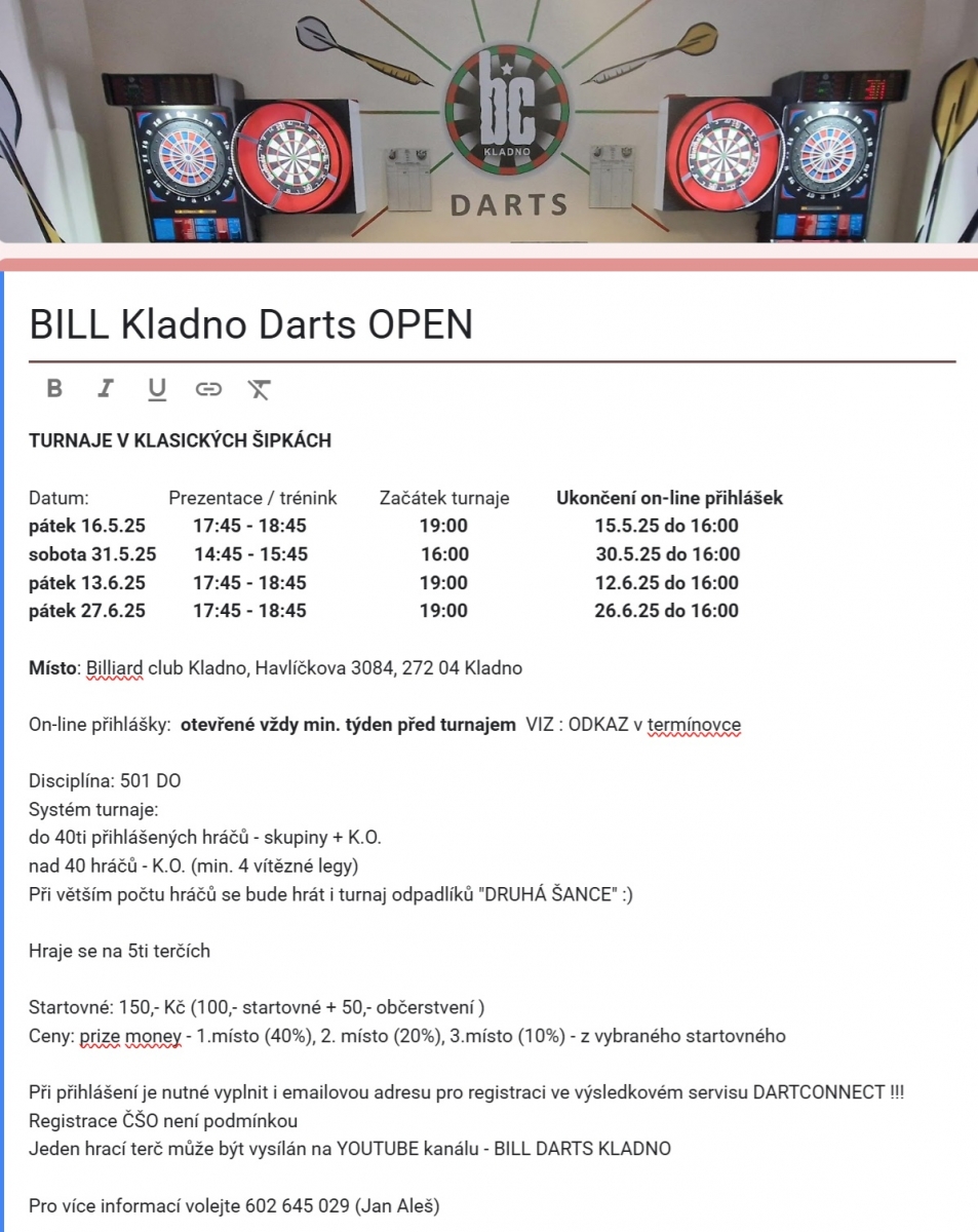 Openy Bill Kladno Darts - pozvánka