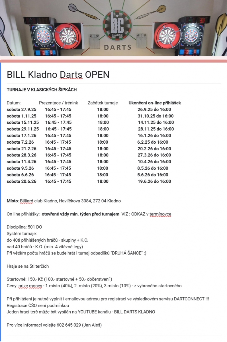 Openy Bill Kladno Darts - pozvánka
