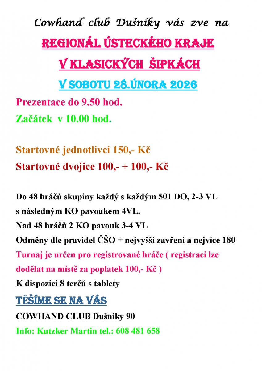 Přihlášením se na tento turnaj každý účastník bere na vědomí, že ČŠO zpracovává osobní údaje v platném formátu ČŠO a to v podobě přihlášky, startovní listiny, rozlosování turnaje a výsledků na webu ČŠO (https://www.czechdarts.org) a v informačním systém STEDAR (https://www.stedar.org). Více informací na https://www.czechdarts.org/rubrika/ochrana-osobnich-udaju