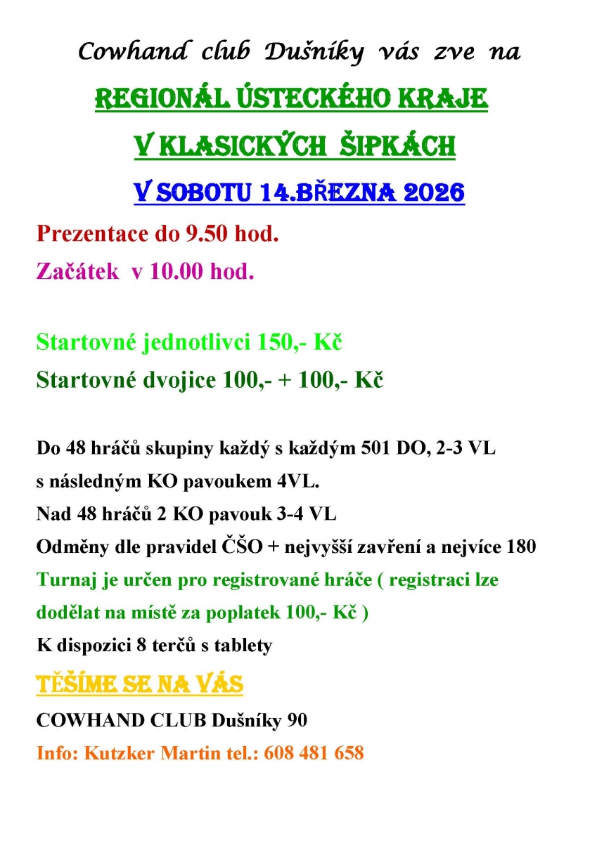 Přihlášením se na tento turnaj každý účastník bere na vědomí, že ČŠO zpracovává osobní údaje v platném formátu ČŠO a to v podobě přihlášky, startovní listiny, rozlosování turnaje a výsledků na webu ČŠO (https://www.czechdarts.org) a v informačním systém STEDAR (https://www.stedar.org). Více informací na https://www.czechdarts.org/rubrika/ochrana-osobnich-udaju