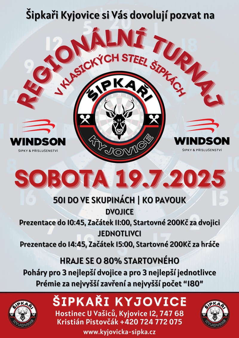 Přihlášením se na tento turnaj každý účastník bere na vědomí, že ČŠO zpracovává osobní údaje v platném formátu ČŠO a to v podobě přihlášky, startovní listiny, rozlosování turnaje a výsledků na webu ČŠO (https://www.czechdarts.org) a v informačním systém STEDAR (https://www.stedar.org). Více informací na https://www.czechdarts.org/rubrika/ochrana-osobnich-udaju
