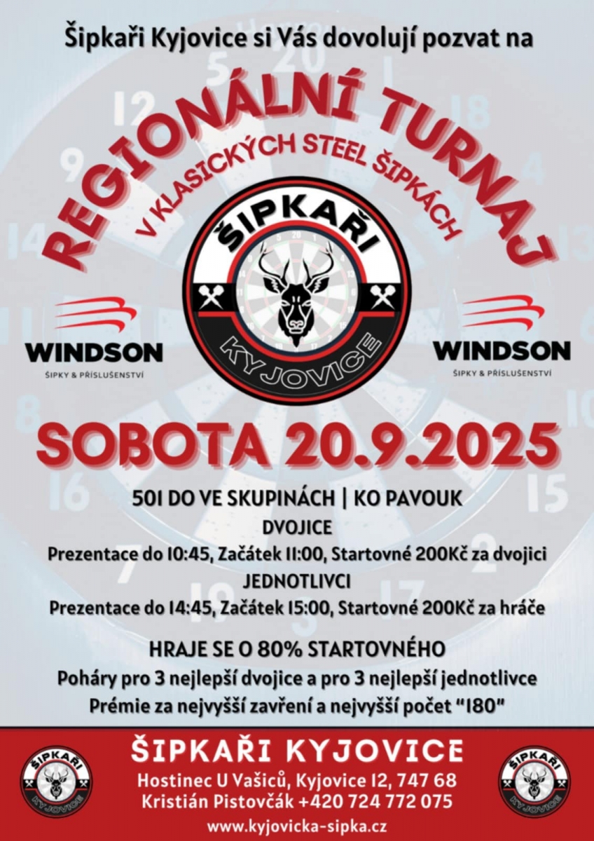 Přihlášením se na tento turnaj každý účastník bere na vědomí, že ČŠO zpracovává osobní údaje v platném formátu ČŠO a to v podobě přihlášky, startovní listiny, rozlosování turnaje a výsledků na webu ČŠO (https://www.czechdarts.org) a v informačním systém STEDAR (https://www.stedar.org). Více informací na https://www.czechdarts.org/rubrika/ochrana-osobnich-udaju