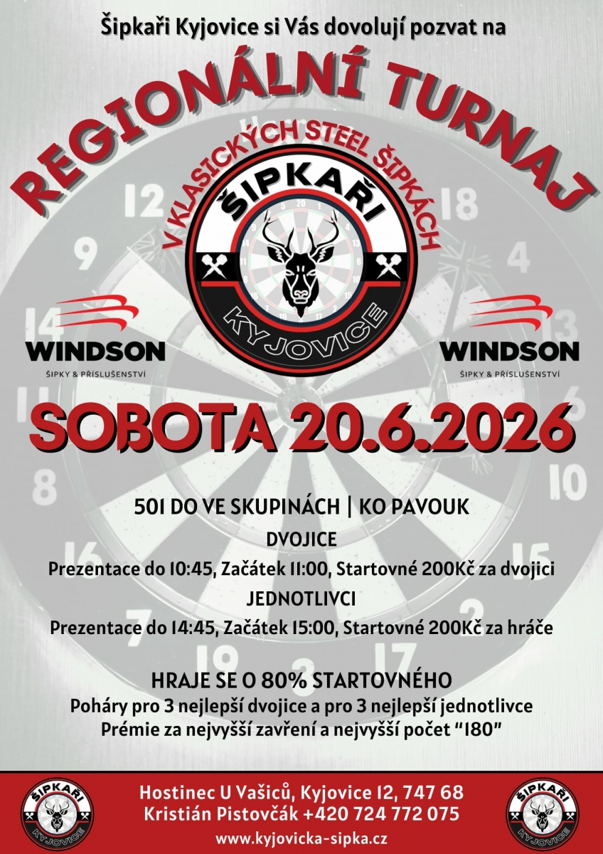 Přihlášením se na tento turnaj každý účastník bere na vědomí, že ČŠO zpracovává osobní údaje v platném formátu ČŠO a to v podobě přihlášky, startovní listiny, rozlosování turnaje a výsledků na webu ČŠO (https://www.czechdarts.org) a v informačním systém STEDAR (https://www.stedar.org). Více informací na https://www.czechdarts.org/rubrika/ochrana-osobnich-udaju
