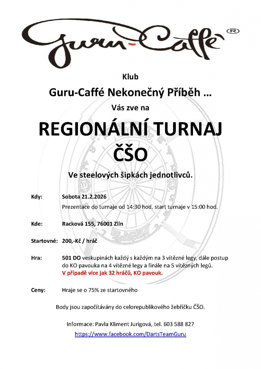 Přihlášením se na tento turnaj každý účastník bere na vědomí, že ČŠO zpracovává osobní údaje v platném formátu ČŠO a to v podobě přihlášky, startovní listiny, rozlosování turnaje a výsledků na webu ČŠO (https://www.czechdarts.org) a v informačním systém STEDAR (https://www.stedar.org). Více informací na https://www.czechdarts.org/rubrika/ochrana-osobnich-udaju